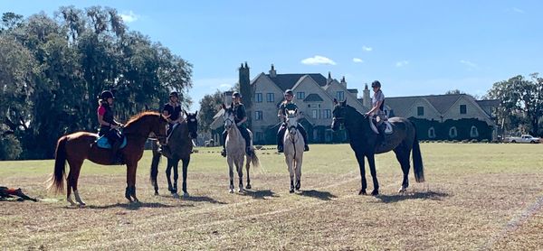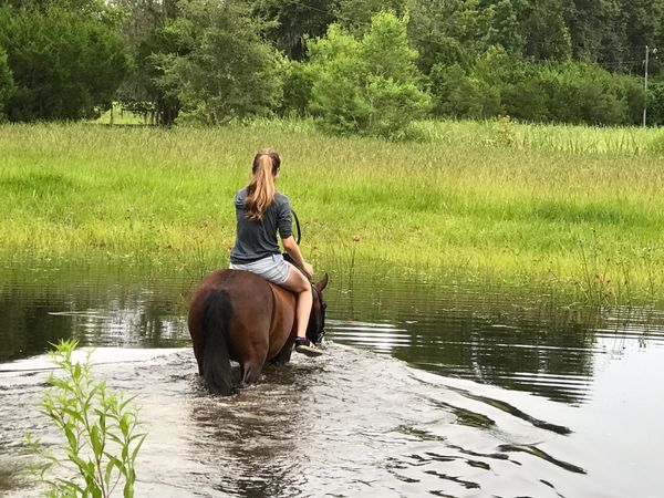 Our multiple acres of flat grassland surrounded by trees and ponds provides a wonderful setting for your riding experience. Large enough for a gallop and secluded enough for a relaxing warm up or cool down during your ride. Set up jumps or do a dressage test - horses just love working out there!