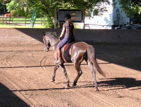 Our lovely then 3-year old Danika under saddle (2020). Such a beautiful mind on this girl! She has gone to a wonderful home in Colorado.