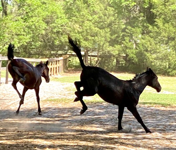 Our covered 20meters x 60 meters arena is a wonderful asset during the hot and wet Florida summers! The sand arena is well maintained and groomed daily during the season. It features a full set of LED lights for nighttime riding and we have 4 speakers that can be hooked up to a mic for lessons or to your phone via bluetooth for those wonderful musical rides!